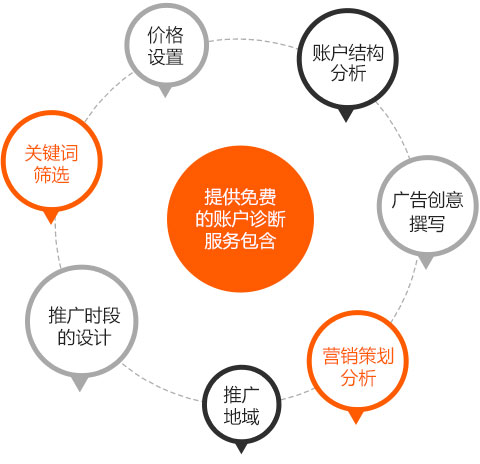 服務(wù)內(nèi)容制定咨詢量或訂單量提升的全套整改方案,進(jìn)行百度競(jìng)價(jià)賬戶的診斷和優(yōu)化,全方位360°解決賬戶影響推廣效果問(wèn)題