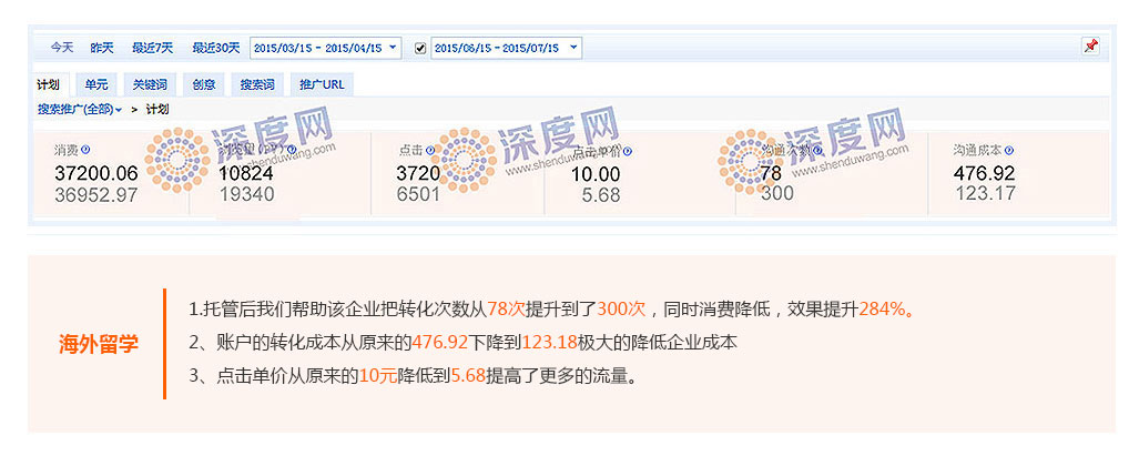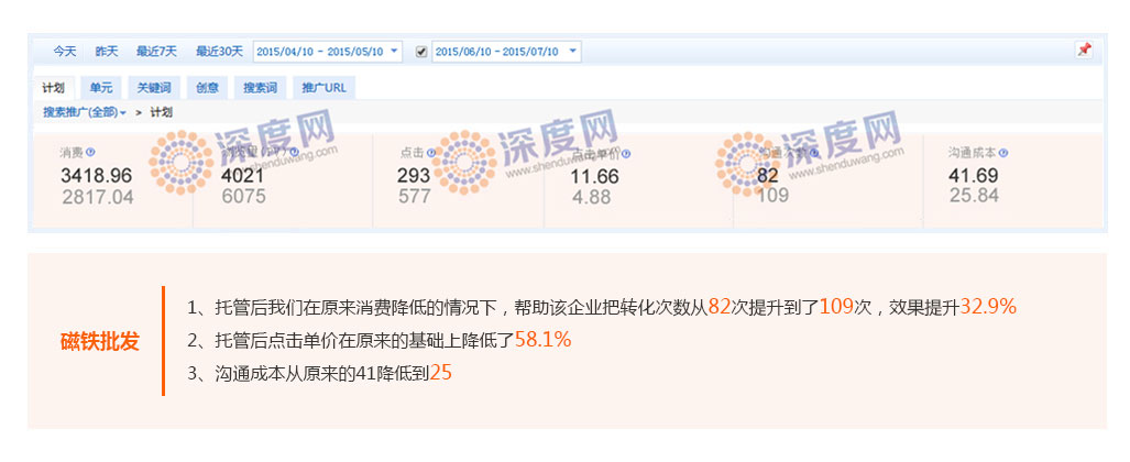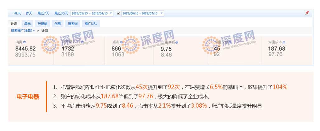 用比同行更低的價(jià)格獲得優(yōu)質(zhì)的客戶,是每一個(gè)企業(yè)開(kāi)展百度付費(fèi)推廣的理想狀態(tài),深度網(wǎng)營(yíng)銷(xiāo)通過(guò)幫助企業(yè)提高關(guān)鍵詞質(zhì)量度得分,從而降低平均點(diǎn)擊價(jià)格。
