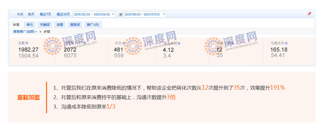 深度網(wǎng)營(yíng)銷(xiāo)已經(jīng)幫助大量企業(yè)在百度競(jìng)價(jià)廣告投入不變的情況下把咨詢總量(訂單總量)在原有基礎(chǔ)上提升數(shù)倍。